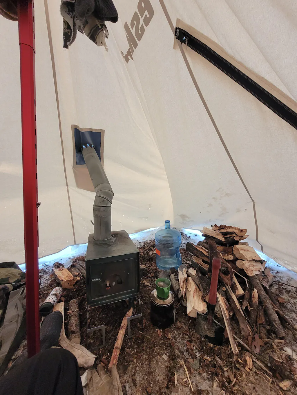 Bought this from MEC to make my own mobile canopy with a 12x12 tarp, 4 poles and one esker center pole and base. Its a damn fine looking pole, slinging it up quickly i just pre fill the hole above or below with a finger and keep alternating to the top, the pole doesn't twist so its this or click every hole on the way up. For my set up it would be nice if there was a clamp or rings for guy lines but not vital to the operation. I purchased some soft loop tie down straps to choke around the shaft and attach lines. So now I have this super sweet pole and have been looking into winter tents and I suppose now esker has my future contract.